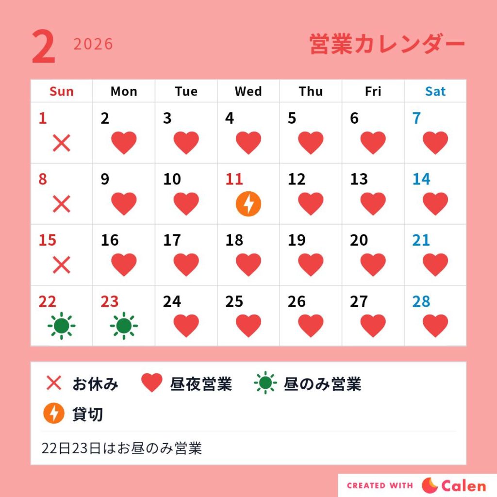 ️⭕️2/11ランチタイムは貸切 夜はお休みとなります