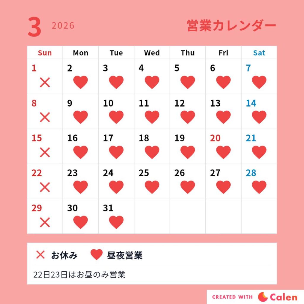 予約等で変更することも御座いますのでLINE等でご確認ください。